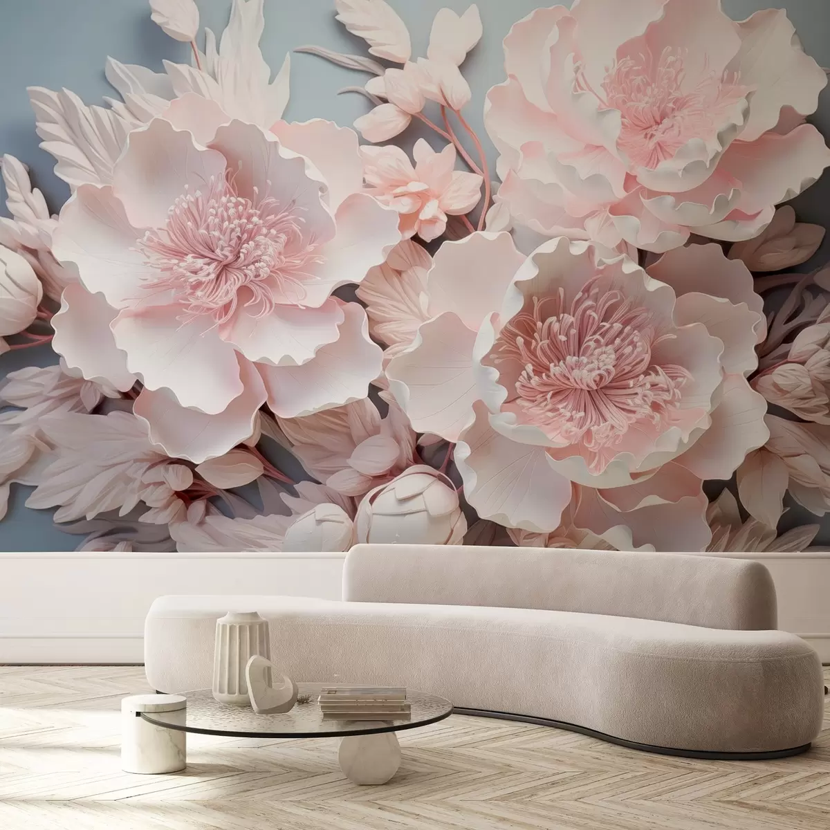 Fotobehang Volumineuze roze bloemen in delicate tinten N° w08988