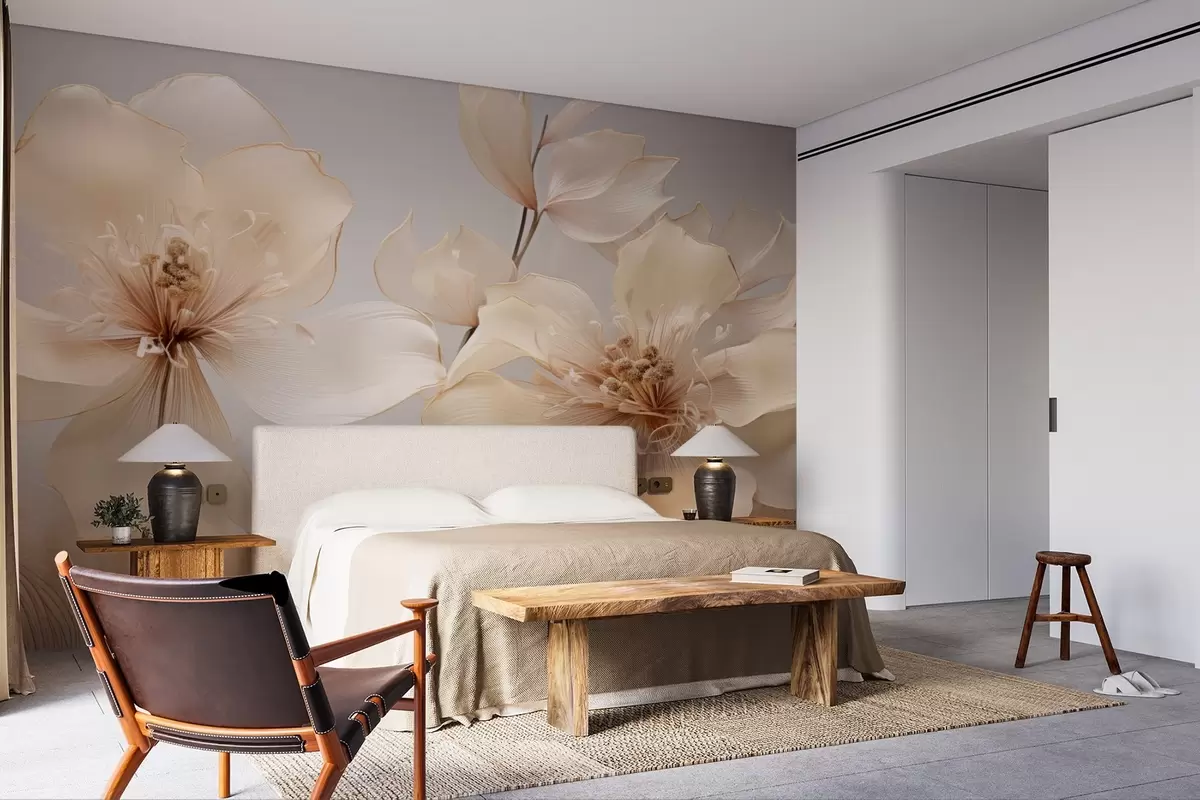 Fotobehang Beige luchtbloemen in zachte tinten N° w09016