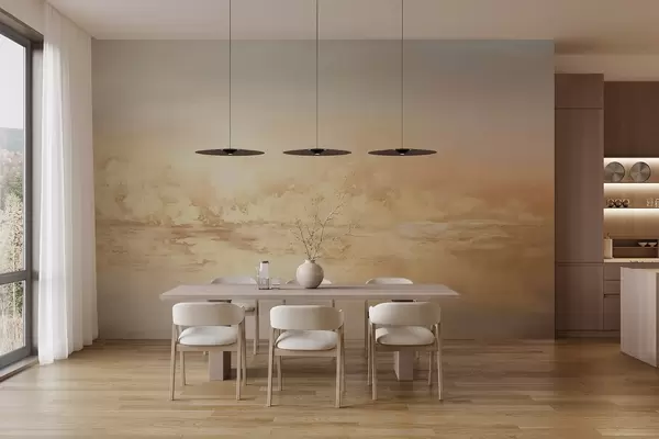 Fotobehang Abstract gestructureerd landschap met warme kleuren, een zachte en dromerige sfeer en een mix van oranje, gele en witte tinten N° w09063