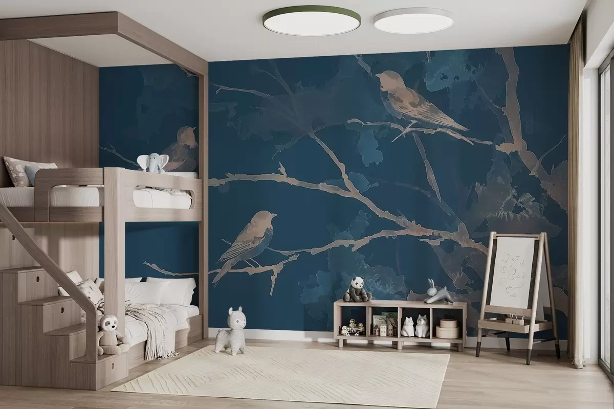 Fotobehang Vogels op boomtakken in aquarelstijl N° w09064v1