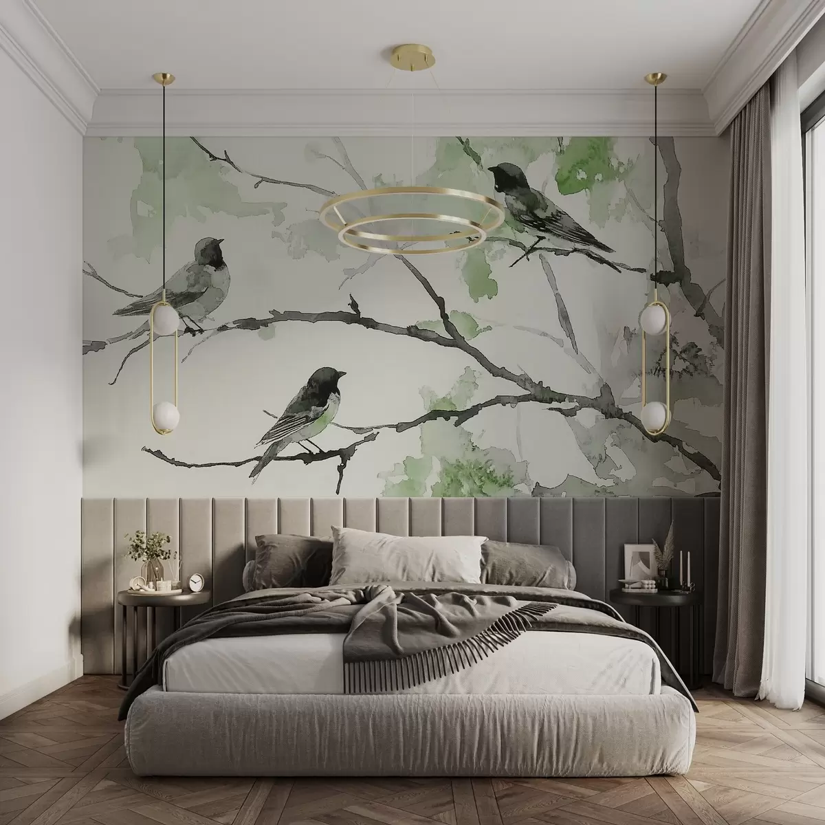 Fotobehang Vogels op boomtakken in aquarelstijl N° w09064v3
