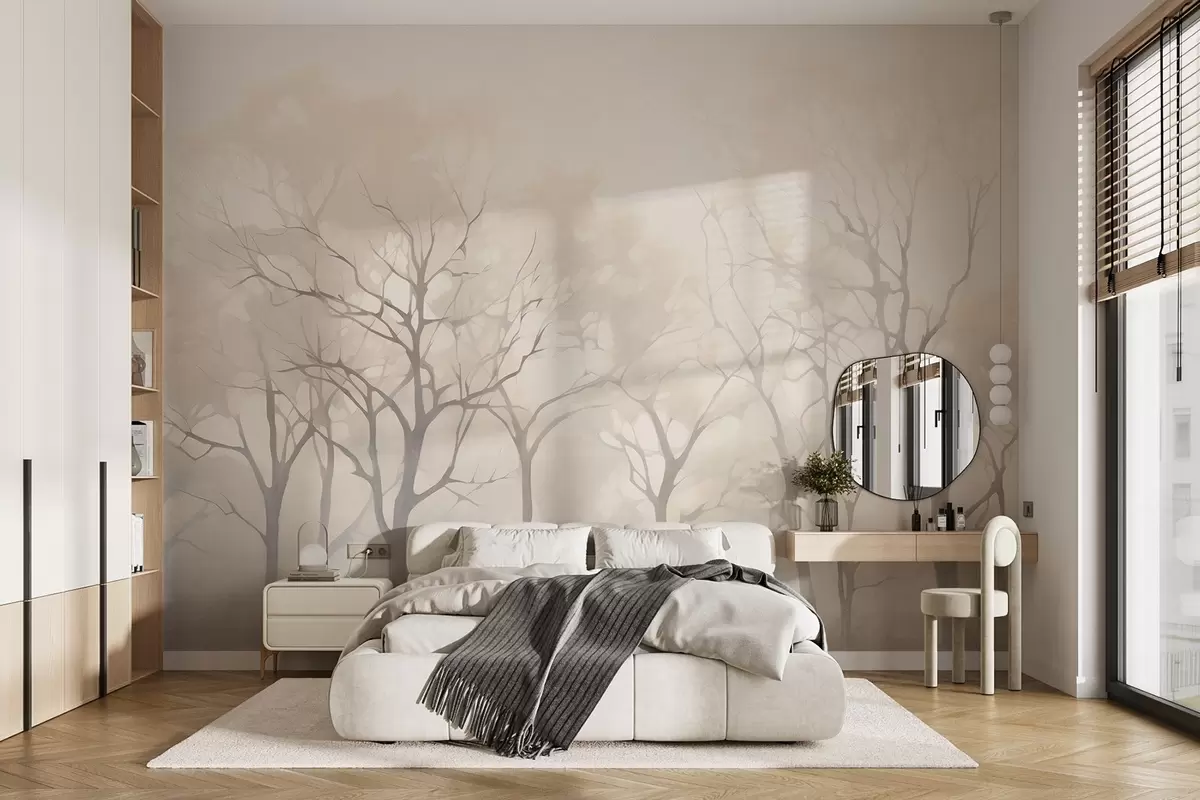 Fotobehang Monochrome vintage bomen in mist N° w09065
