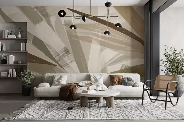 Fotobehang Abstracte bladeren in groene en beige tinten N° w09091