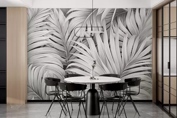 Fotobehang Monochrome tropische palmbladeren met textuur voor een tropische en botanische print N° w09145
