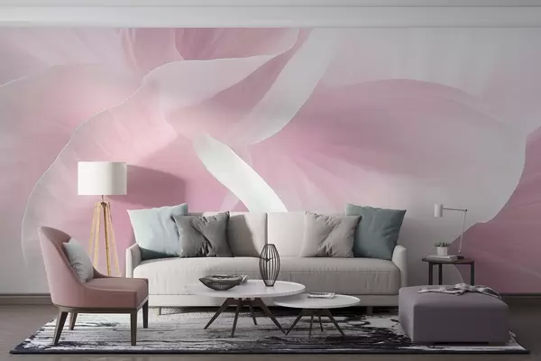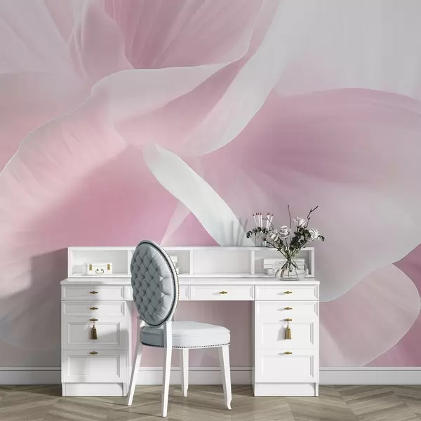 Fotobehang Abstracte getextureerde bloem met delicate bloemblaadjes, zachte verlichting, elegante compositie, minimalistische esthetiek N° w09211v1