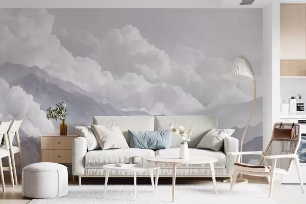 Fotobehang Zachte wolken boven bergen in blauwe tinten N° w09226v2