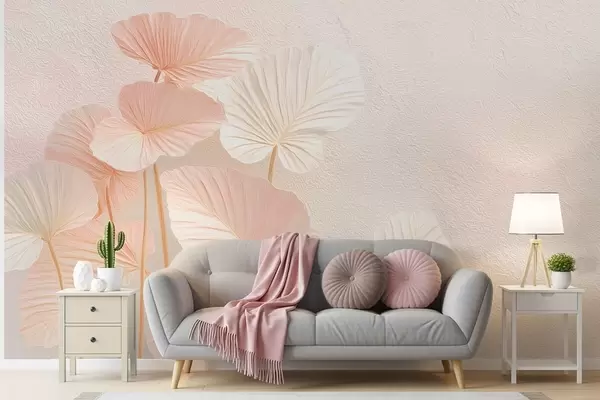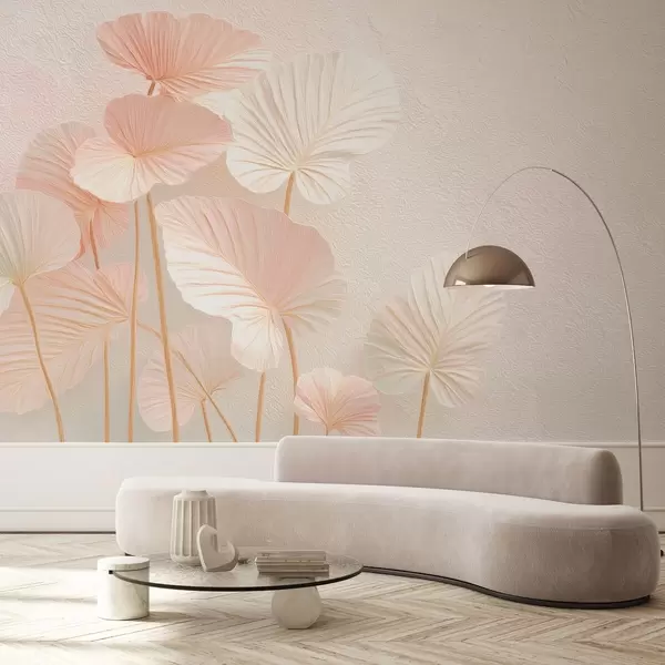 Fotobehang Elegante grote tropische bladeren in delicate roze kleur N° w09252v1