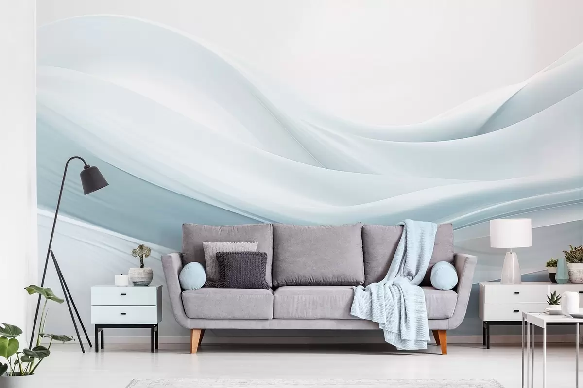 Fotobehang Blauwe stoffen golven in minimalistische abstracte stijl N° w09279v2