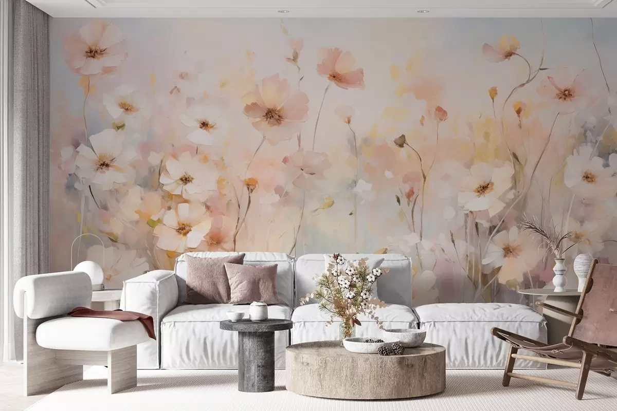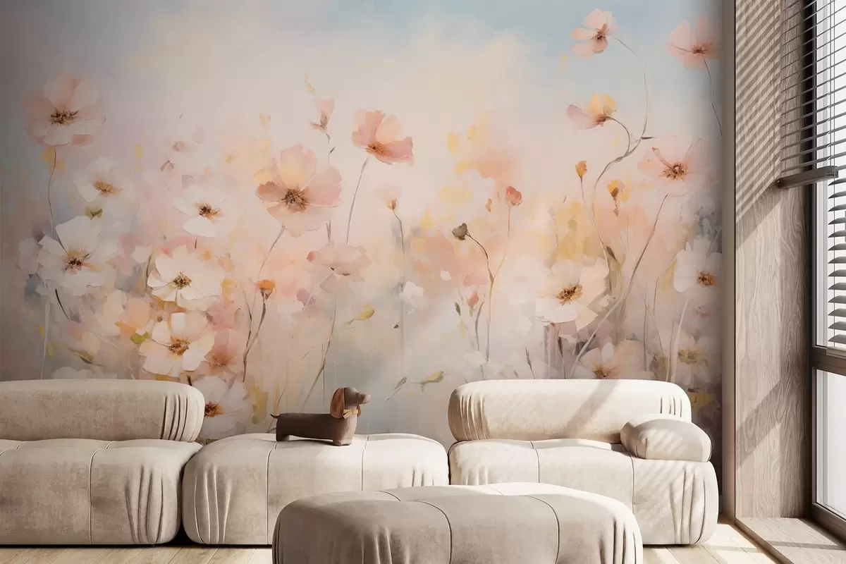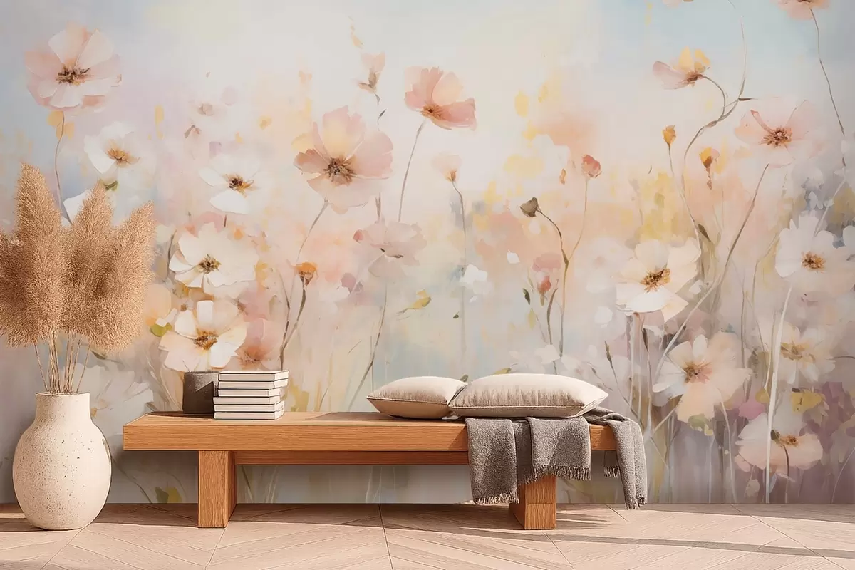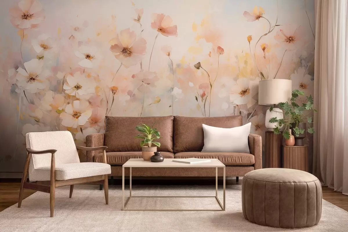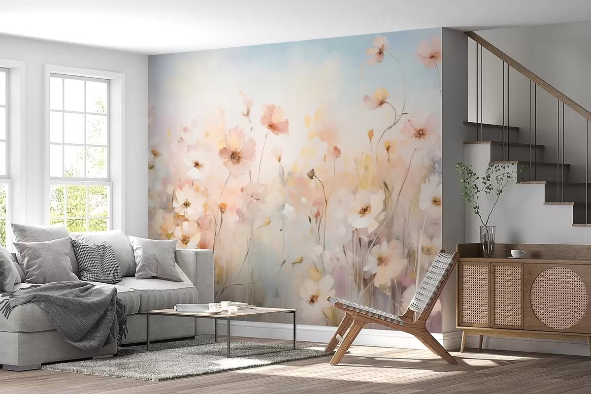 Fotobehang Wilde bloemen in pasteltinten in aquarelstijl N° w09280