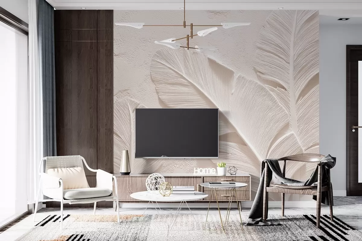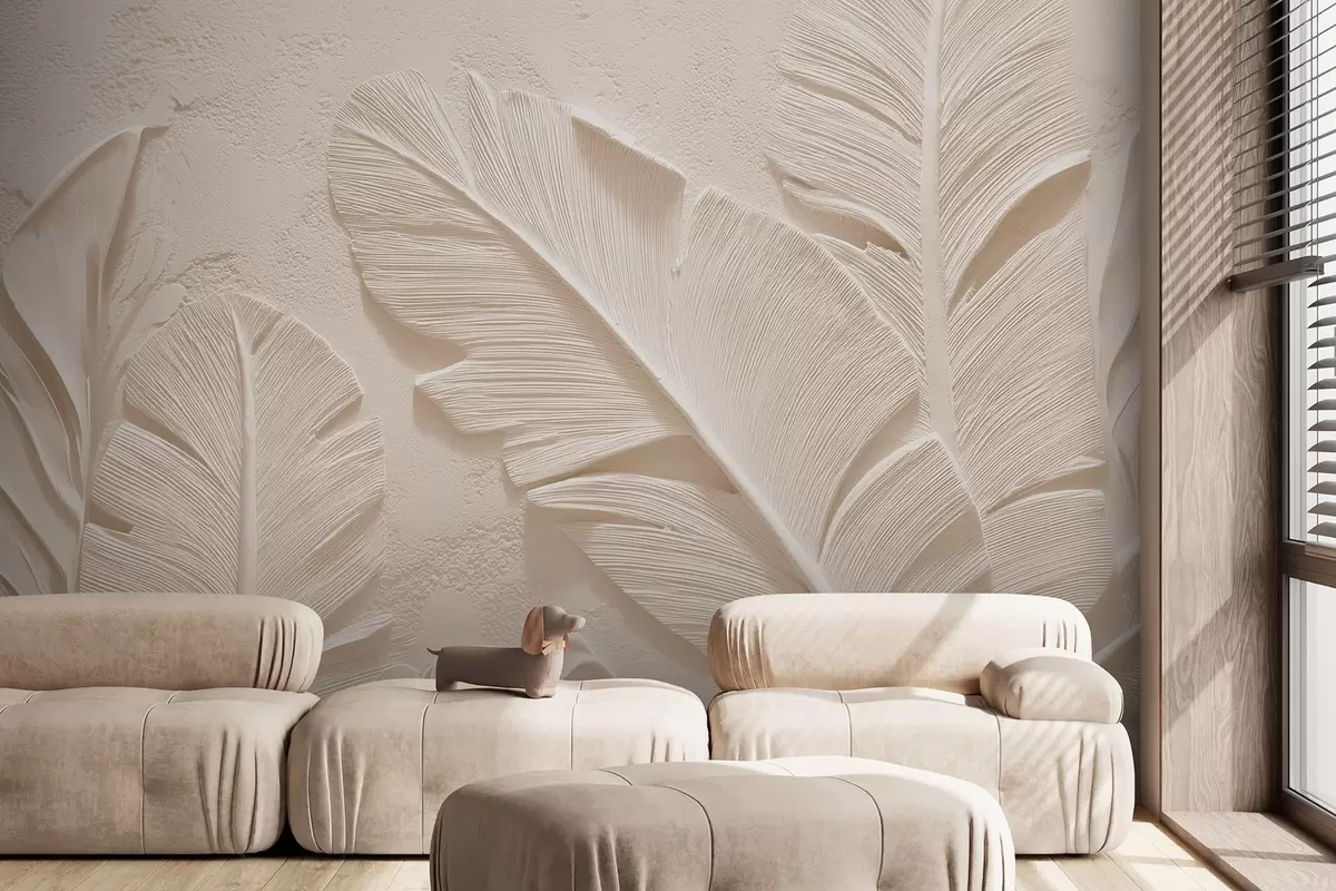 Fotobehang Reliëfbladeren in warme beige-zandtinten N° w09307v1