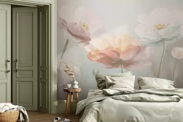 Fotobehang Volumetrische pastel klaprozen in olieverfstijl N° w09310v1