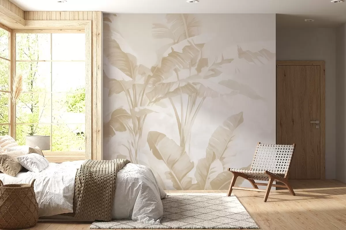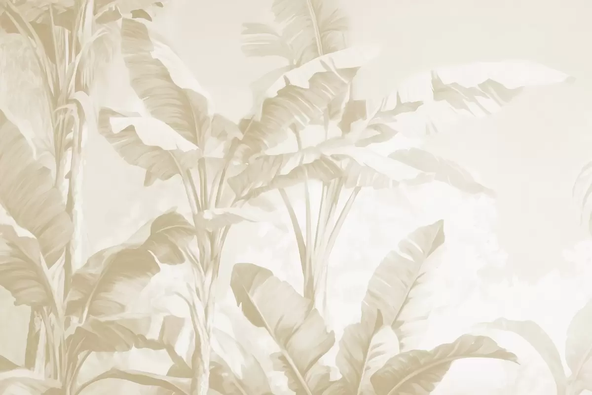 Fotobehang Tropische bananenbladeren in zachte beige tinten N° w09311v2