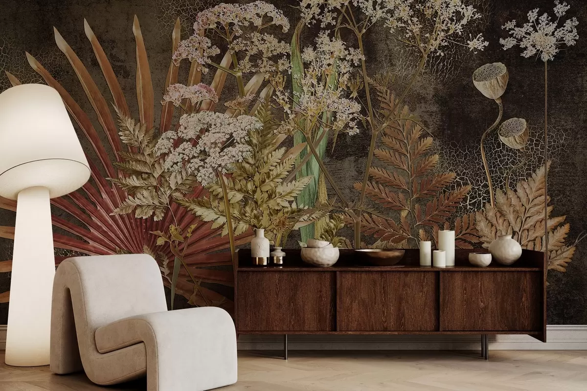 Fotobehang Herbarium op een donkere achtergrond N° w09323