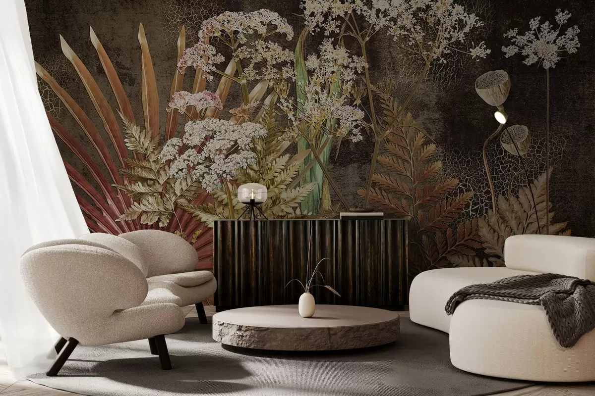 Fotobehang Herbarium op een donkere achtergrond N° w09323