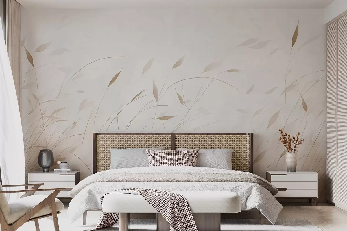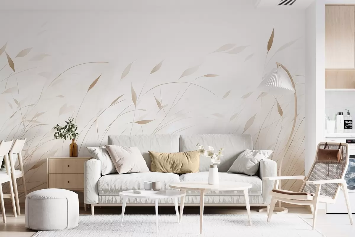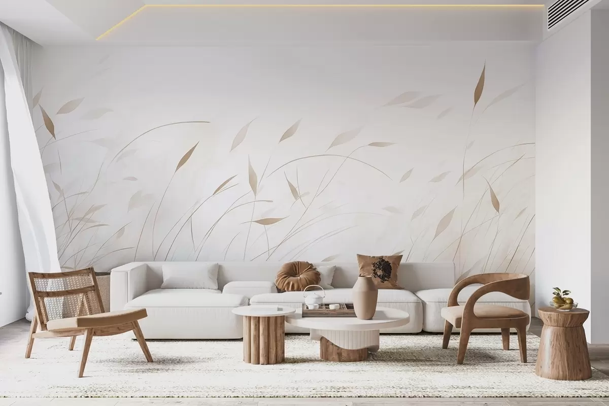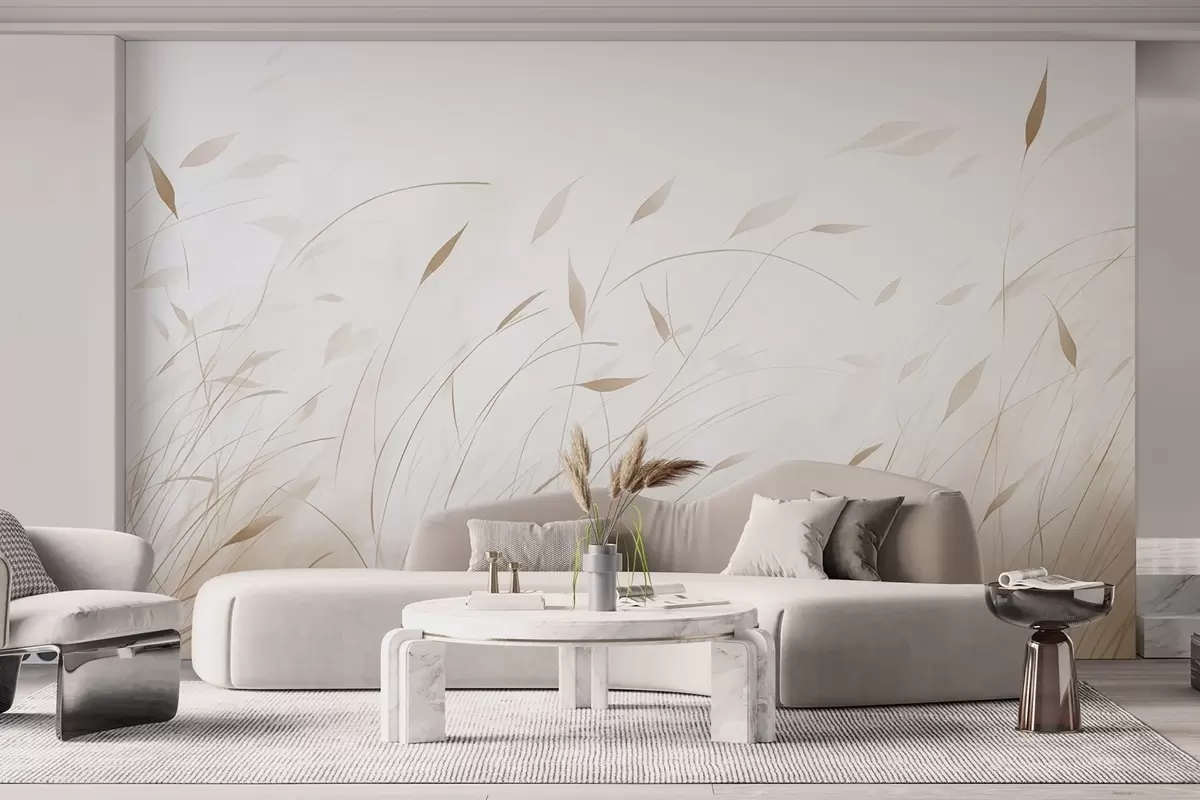 Fotobehang Gras in de wind in aquarelstijl in beige tinten N° w09331v1