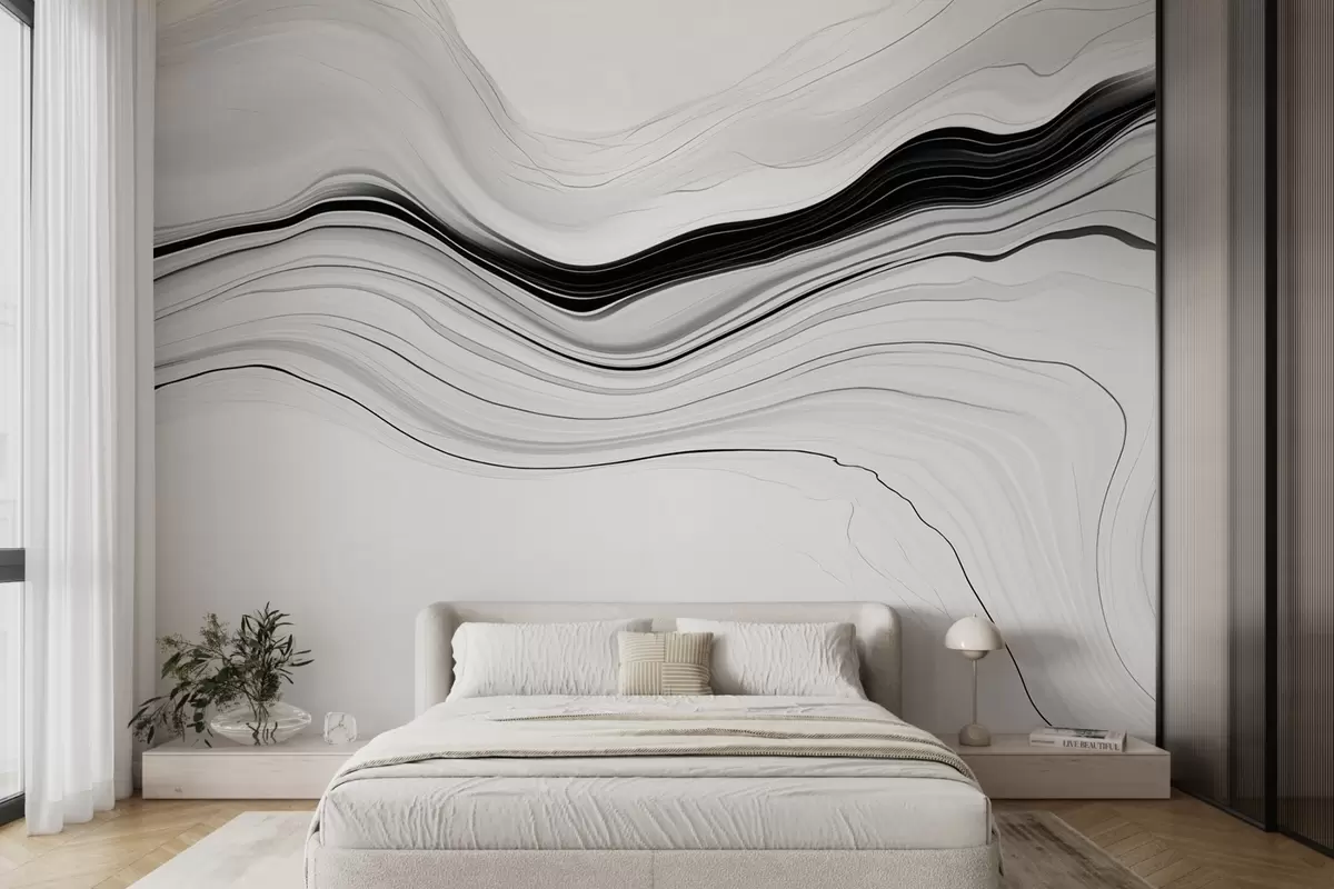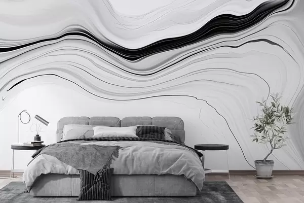 Fotobehang Zwart-wit patroon met het effect van marmeren lagen N° w09358