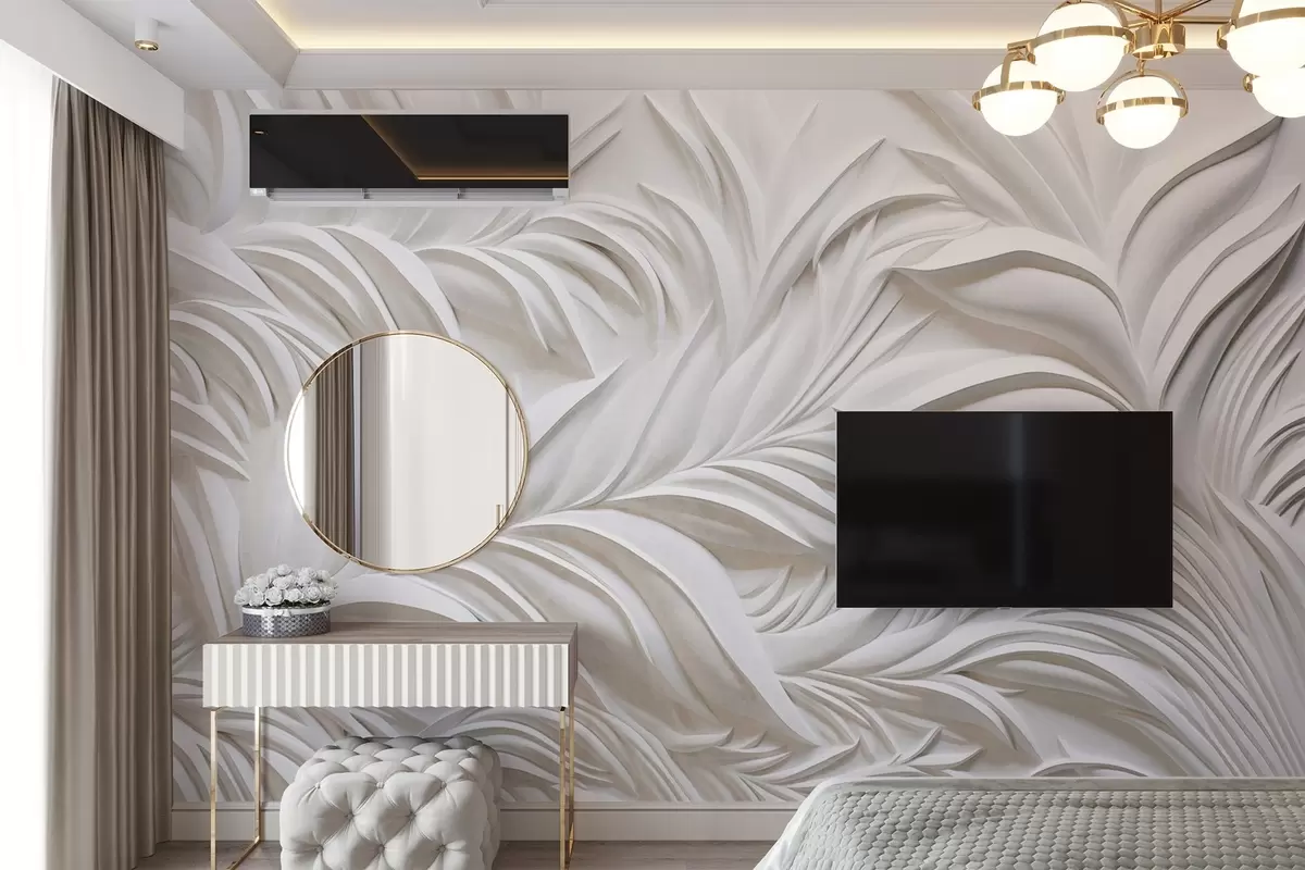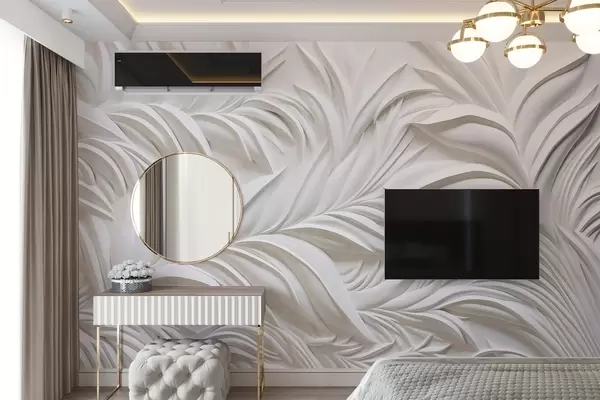 Fotobehang Abstract getextureerde witte bladeren en bloemenelementen, minimalistische esthetiek N° w09378