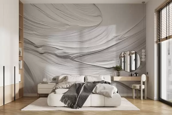 Fotobehang Abstracte, gestructureerde witte verfstreken imitatie met een wervelend patroon, neutraal, minimalistisch modern ontwerp N° w09394