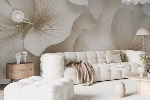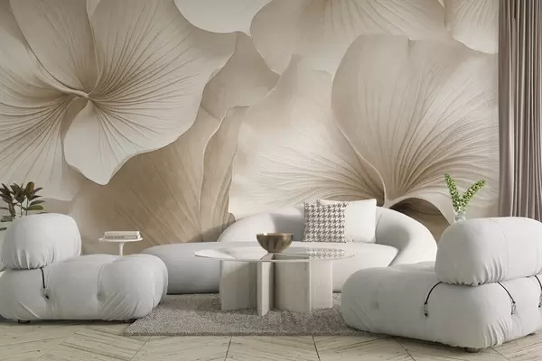 Fotobehang Witte en beige ginkgobladeren, zachte textuur, abstracte bloemenachtergrond, minimalistische moderne stijl N° w09421v1
