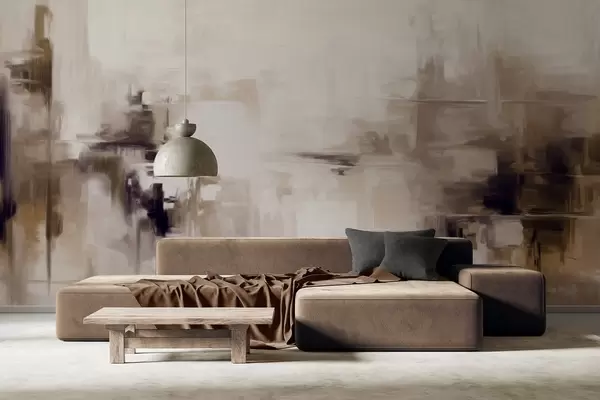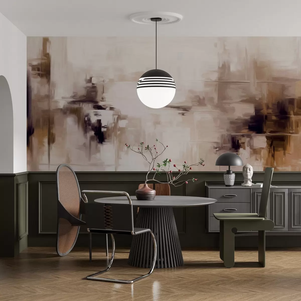 Fotobehang Abstracte imitatie van een landschapsschilderij met bruine en witte penseelstreken, moderne stijl N° w09422v1