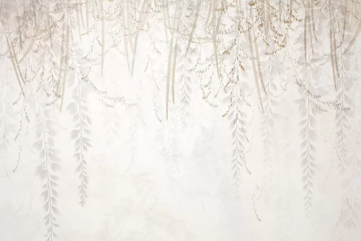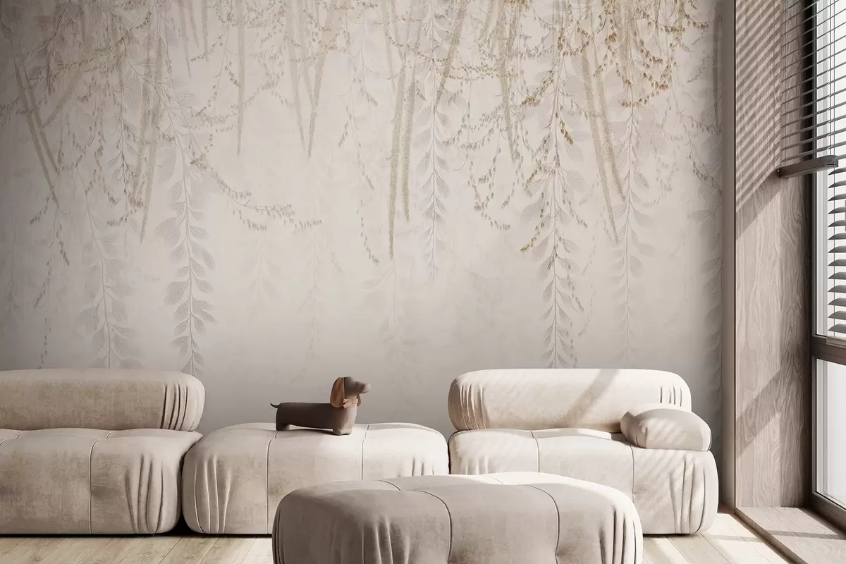 Fotobehang Lichte hangende bladeren en takken in beige tinten N° w09433