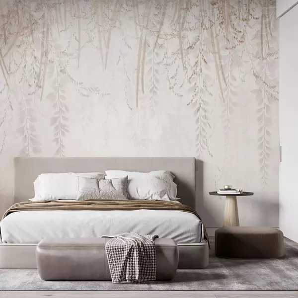 Fotobehang Lichte hangende bladeren en takken in beige tinten N° w09433