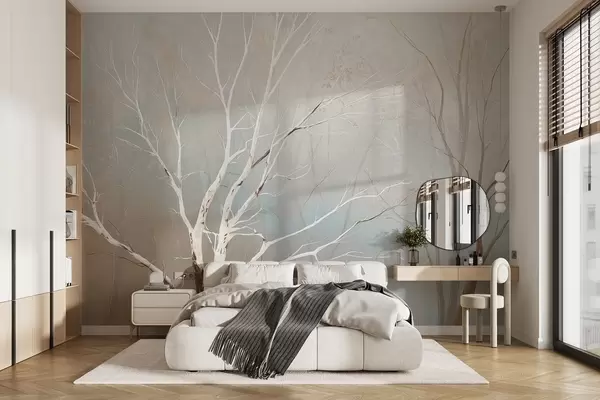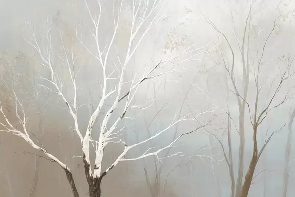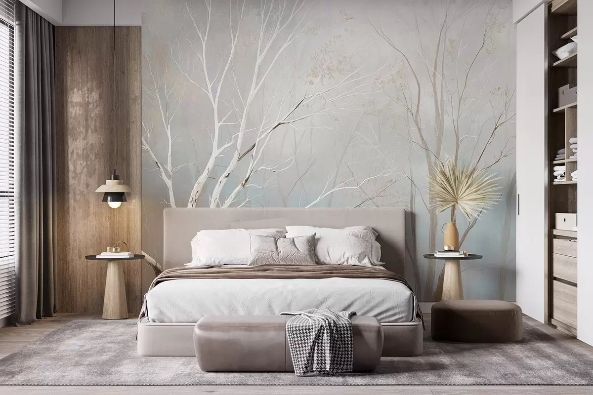 Fotobehang Lichte takken in ochtendmist in pasteltinten N° w09447