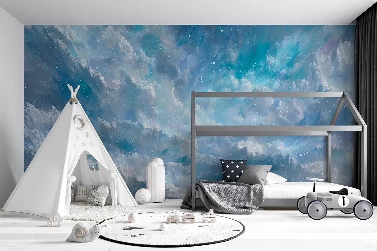 Fotobehang Hemelse abstracte wolken in een koel pastelpalet N° w09459