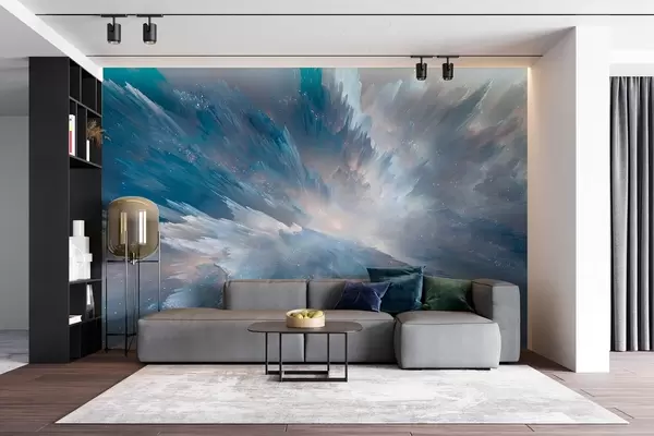Fotobehang Abstracte kosmische hemelgloed in ijzige blauwe tinten N° w09461