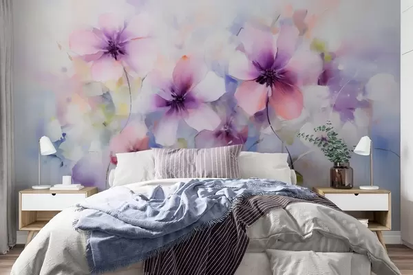 Fotobehang Lente-aquarelbloemen in roze en paarse tinten N° w09502