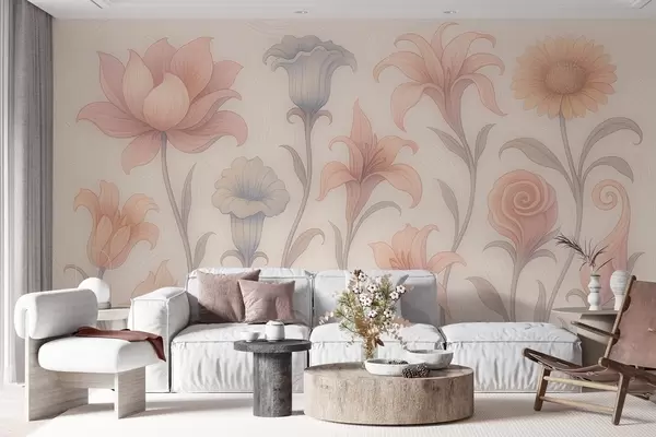 Fotobehang Zachte bloemencompositie in pastelkleuren N° w09503