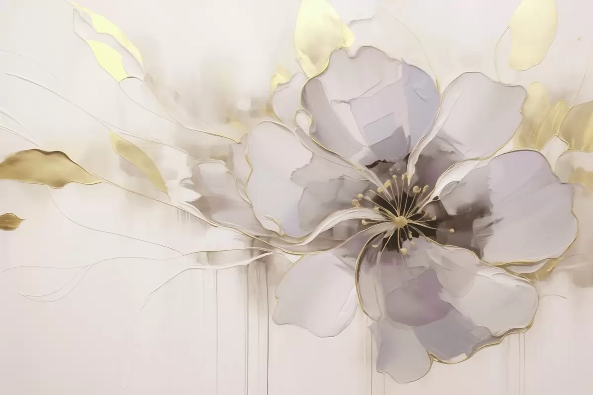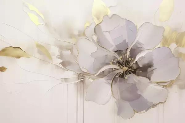 Fotobehang Blauwe bloem met gele accenten in een abstracte penseelstreekstijl N° w09505