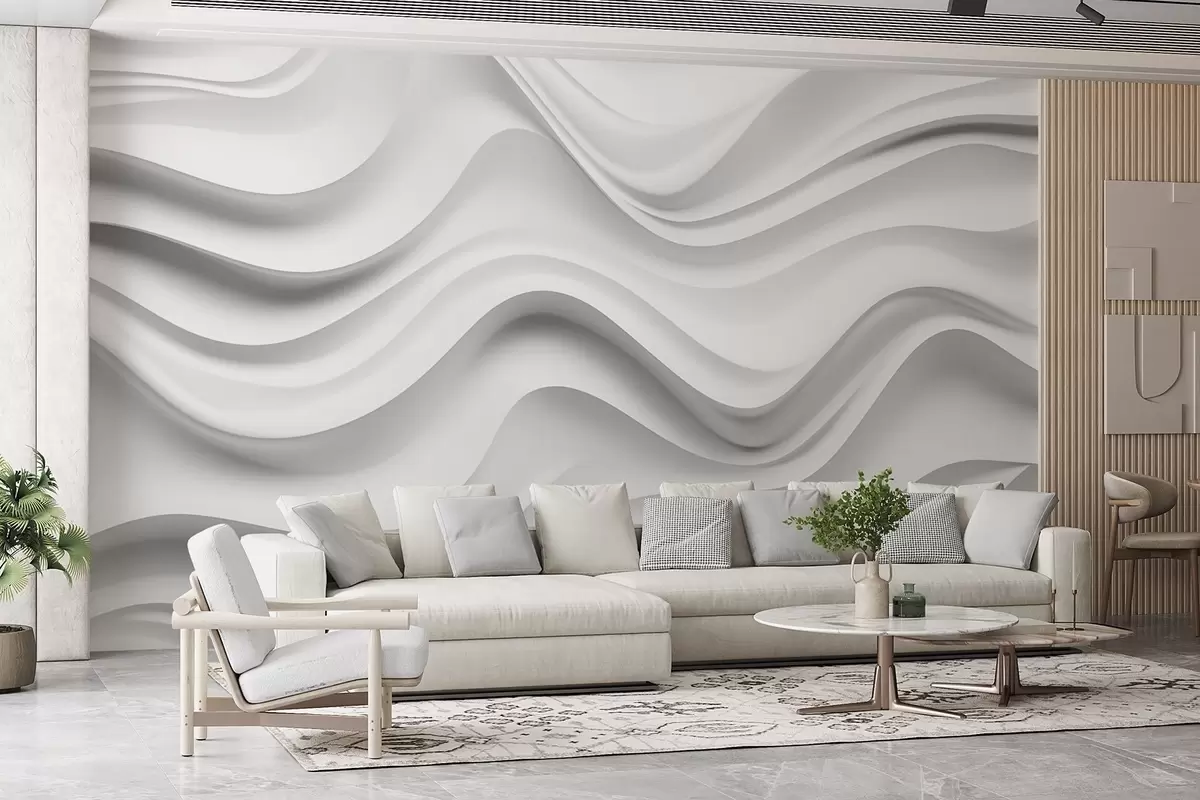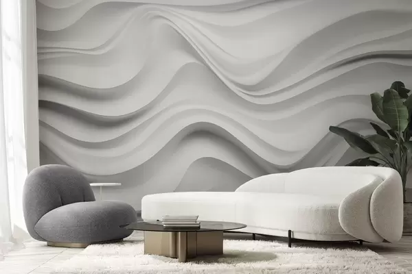 Fotobehang Zwart-witte abstracte 3D-compositie met vloeiende golven N° w09506
