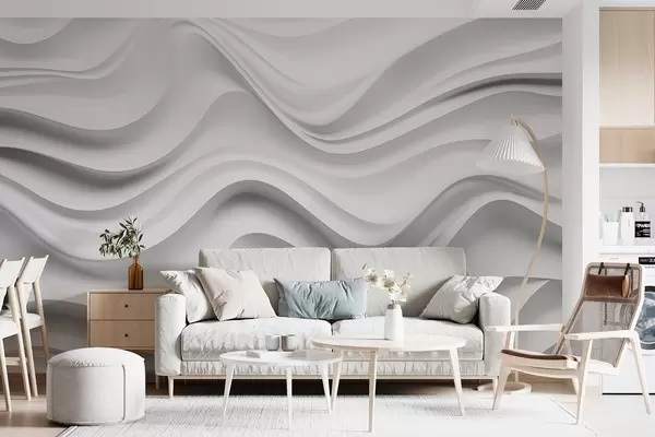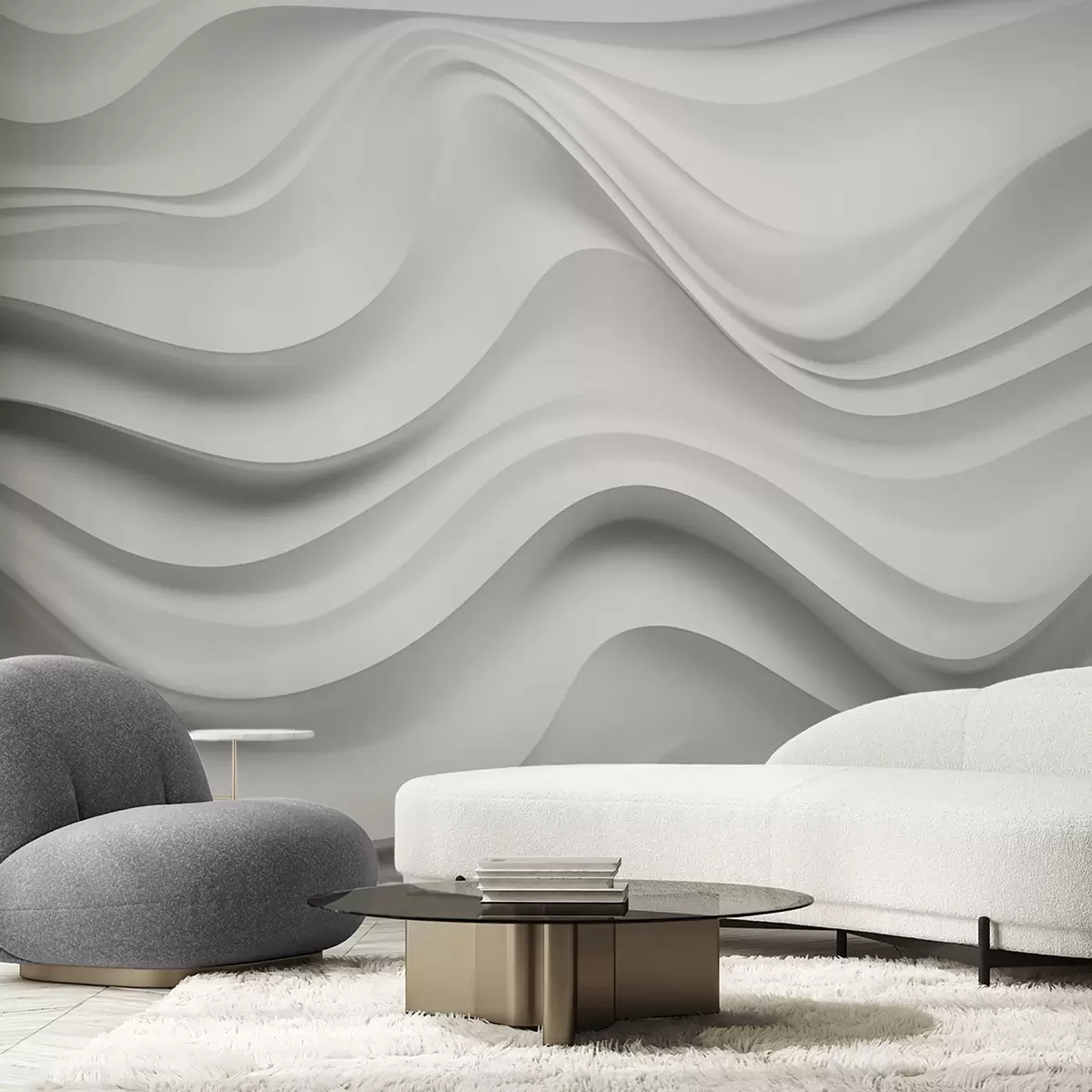Fotobehang Zwart-witte abstracte 3D-compositie met vloeiende golven N° w09506
