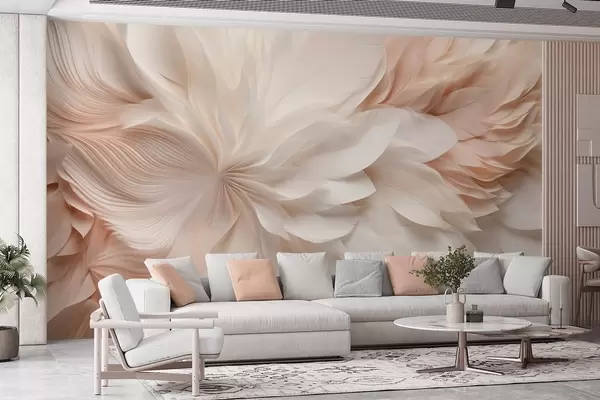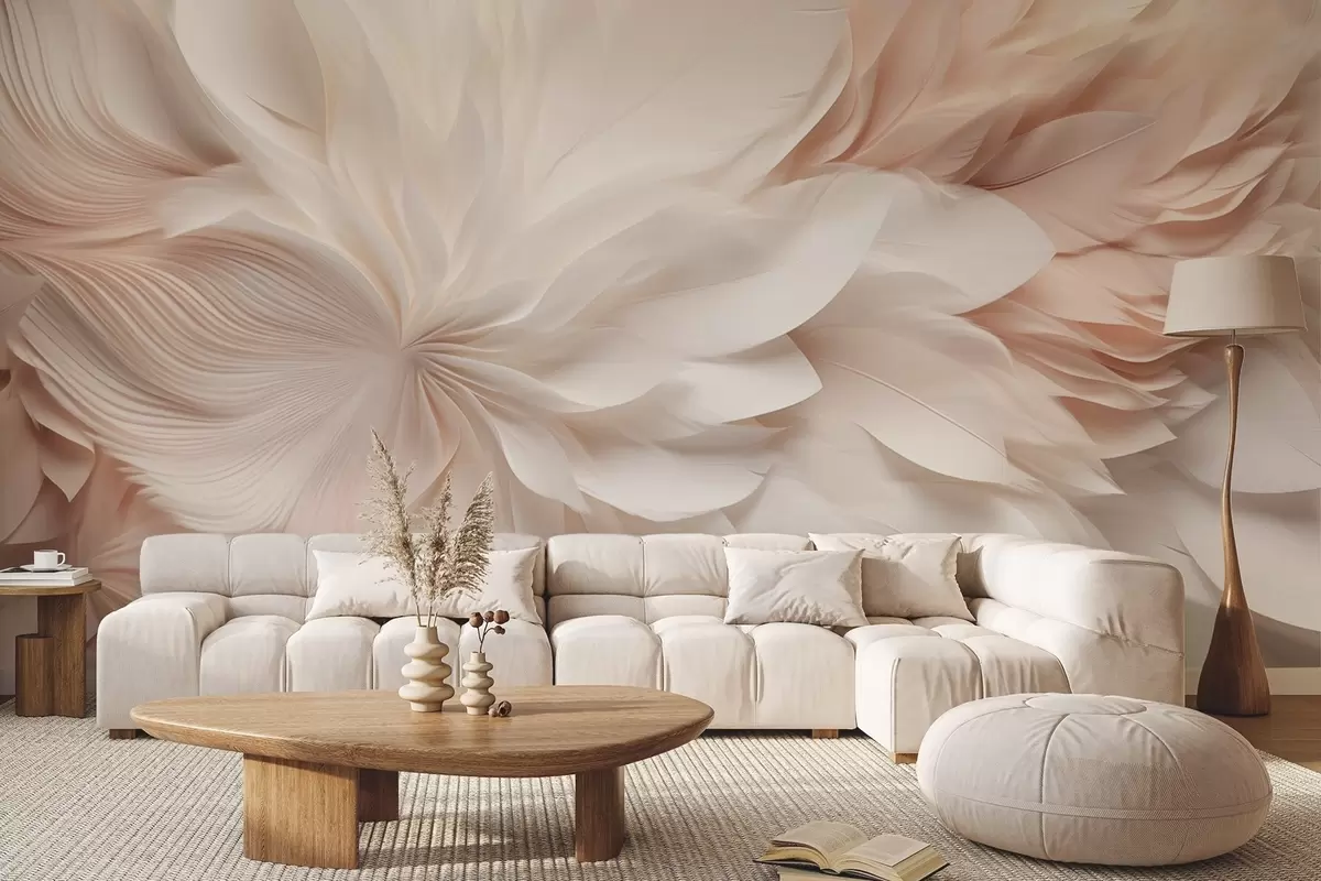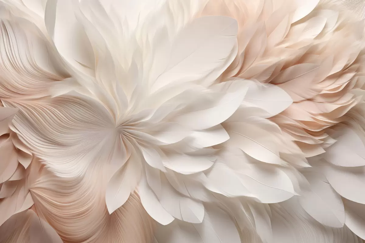 Fotobehang Delicate abstracte veren in beweging in beige en crèmekleurige tinten N° w09509