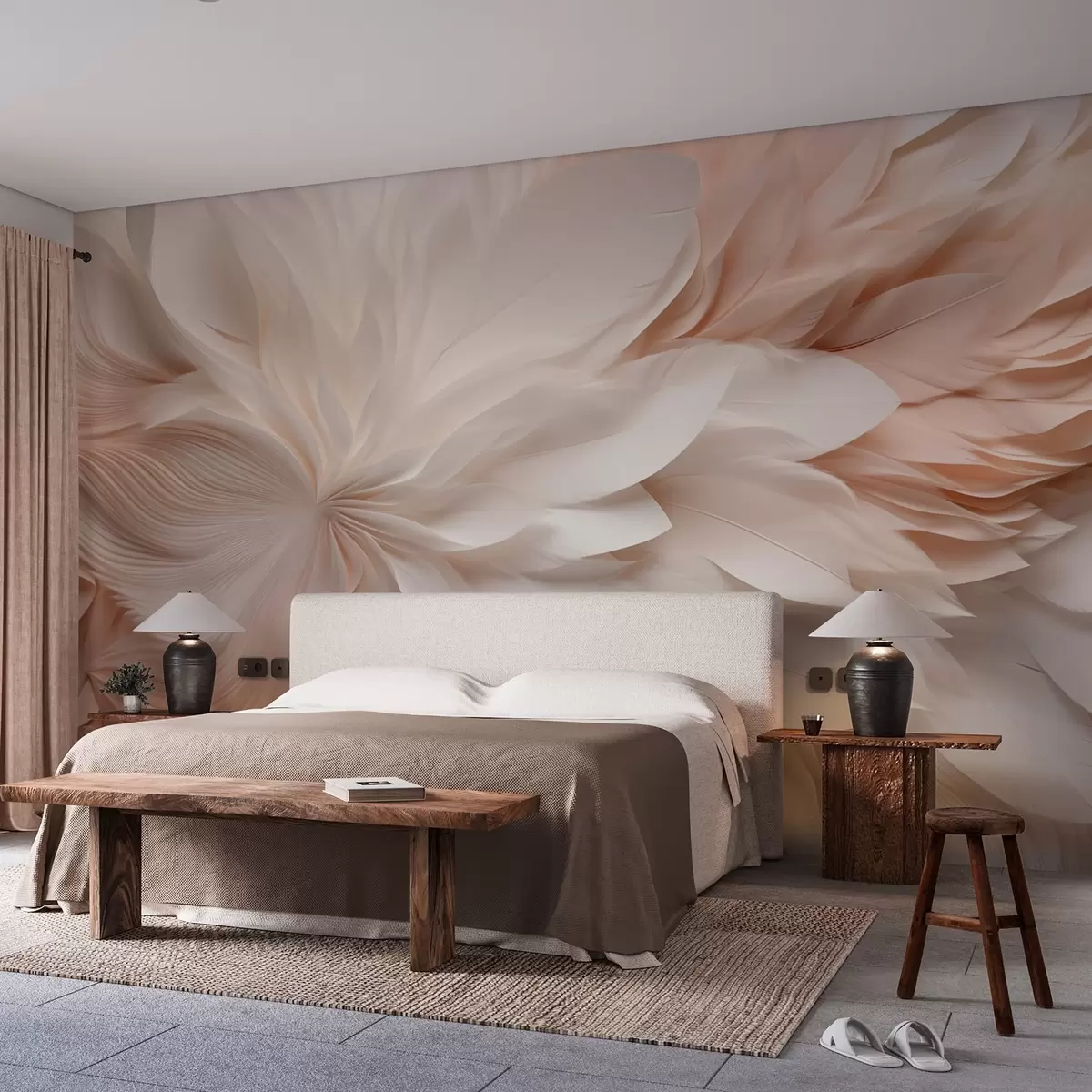 Fotobehang Delicate abstracte veren in beweging in beige en crèmekleurige tinten N° w09509