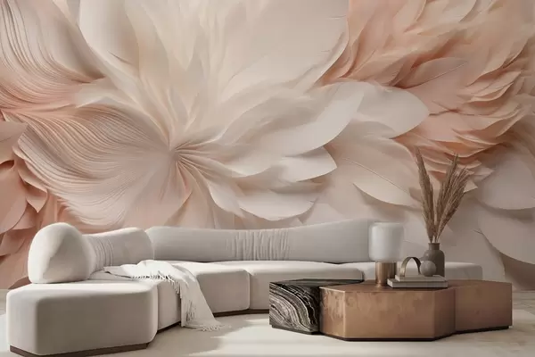 Fotobehang Delicate abstracte veren in beweging in beige en crèmekleurige tinten N° w09509