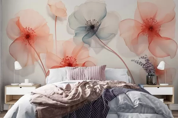 Fotobehang Doorschijnende bloemen in rode en blauwe tinten N° w09515