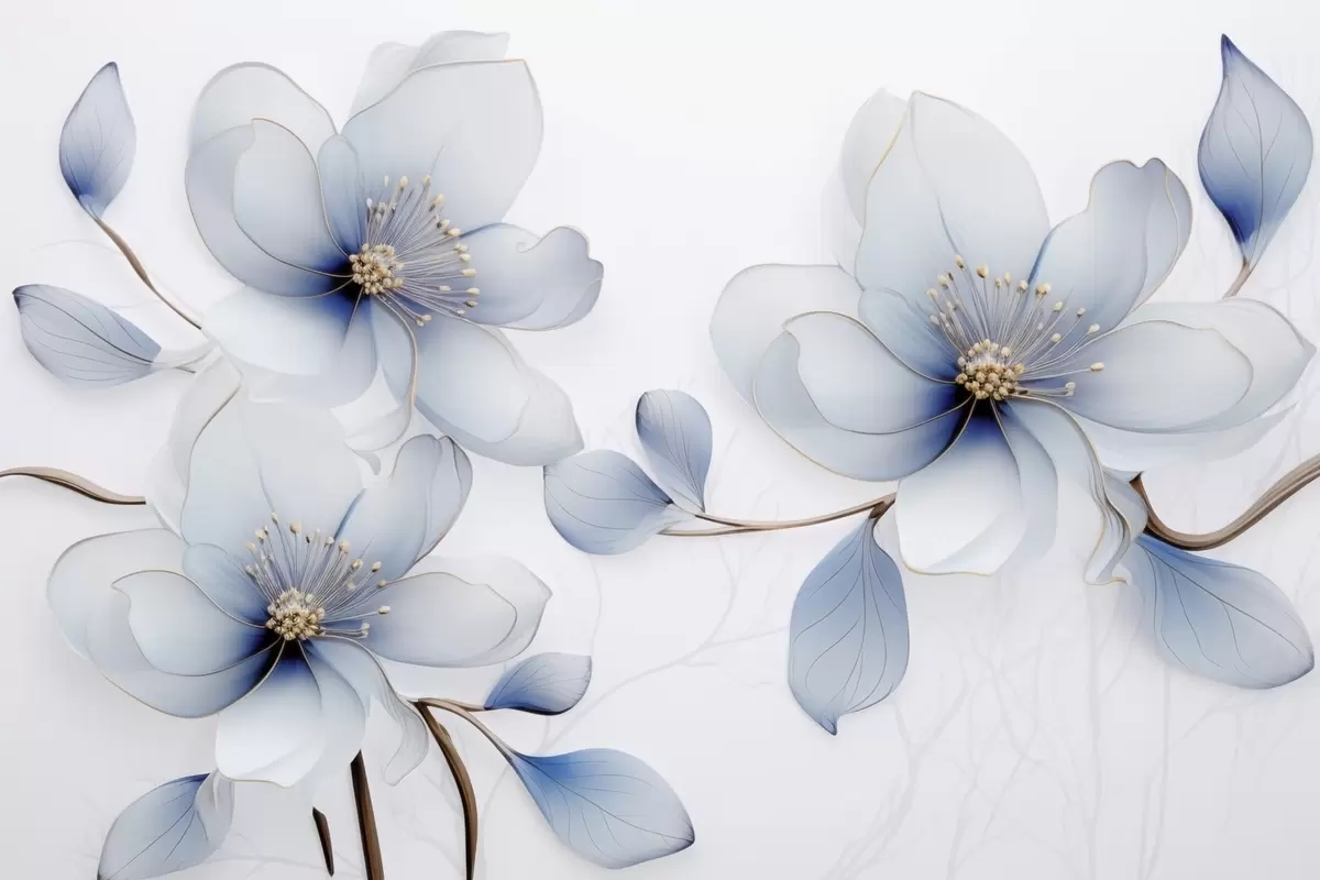Fotobehang Elegante magnoliabloemcompositie in blauwtinten N° w09520