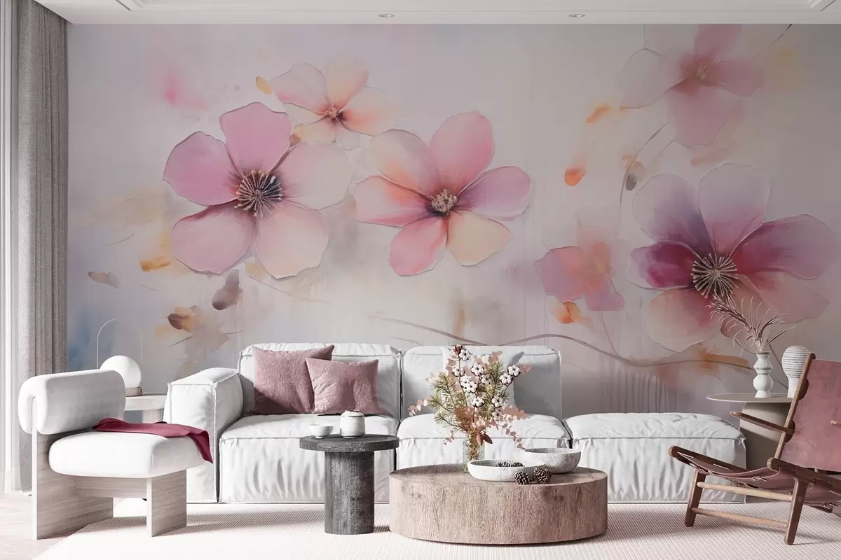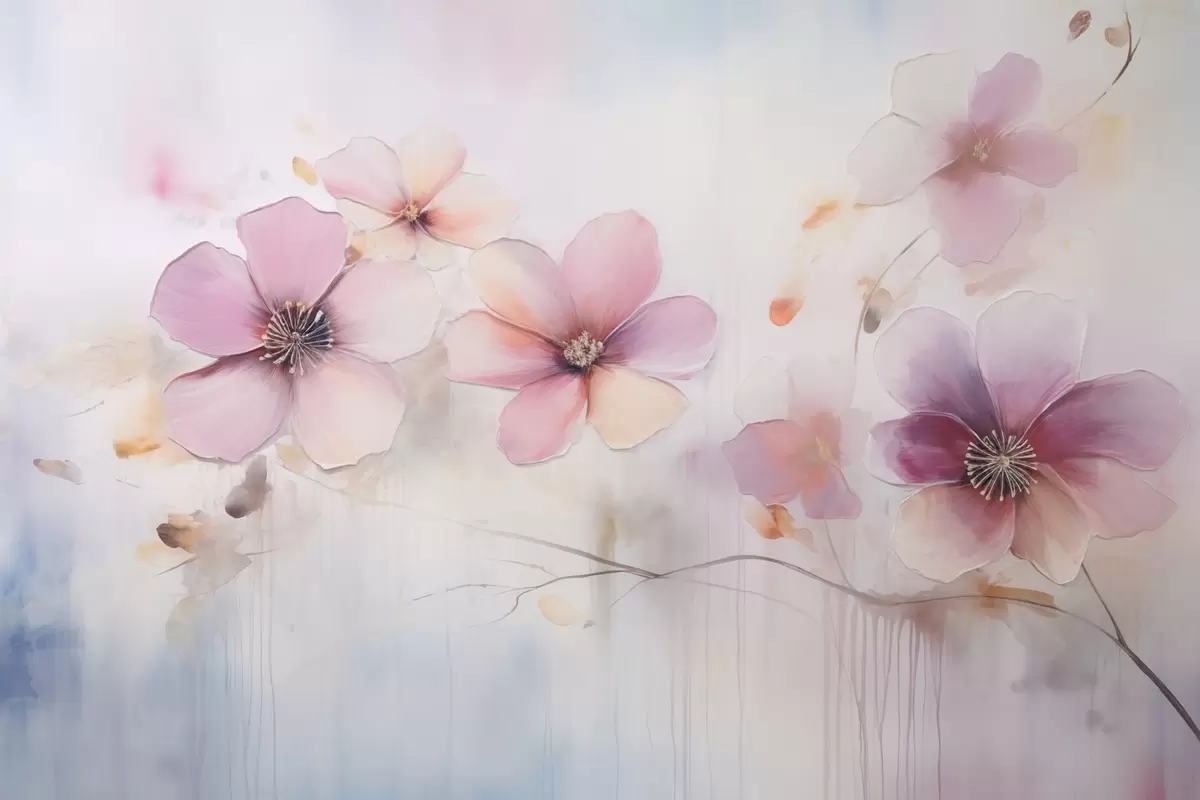 Fotobehang Tak met roze bloemen in aquarelstijl N° w09522