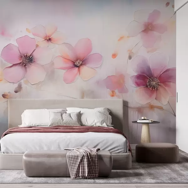 Fotobehang Tak met roze bloemen in aquarelstijl N° w09522