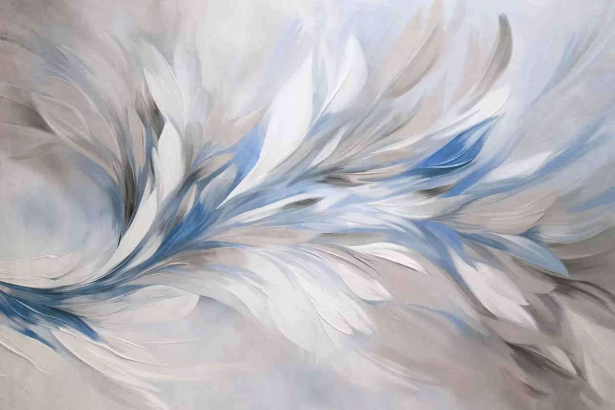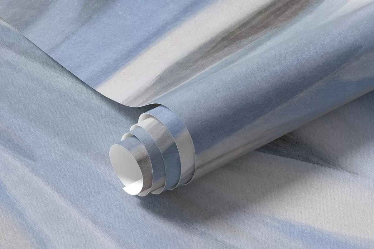 Fotobehang Abstracte schilderstijl met witte, blauwe en grijze penseelstreken met textuur op een zachte, lichte achtergrond N° w09552v1