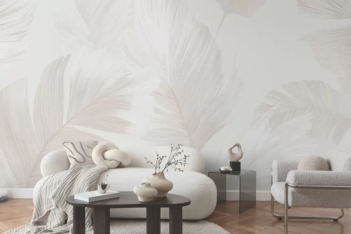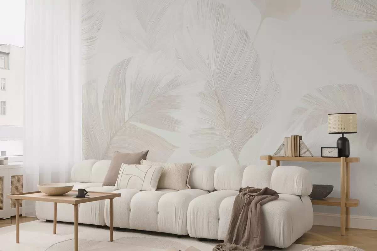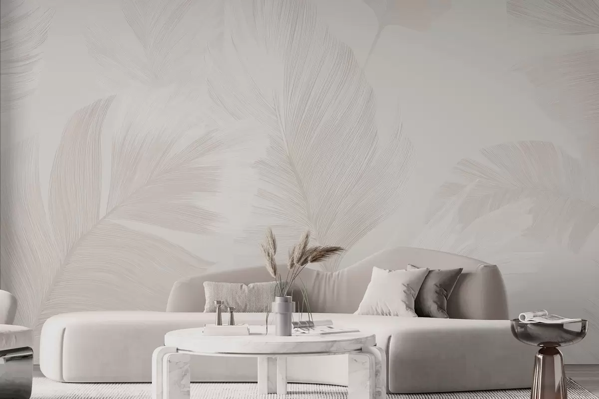 Fotobehang Zachte ivoorkleurige veren in melkachtige beige tinten N° w09563