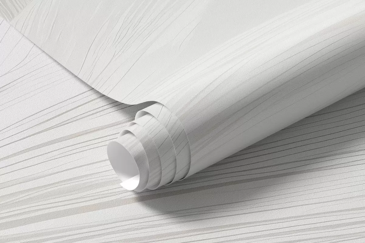 Het resultaat is dat je je behangpapier al in rollen gesneden ontvangt, netjes verpakt voor levering.