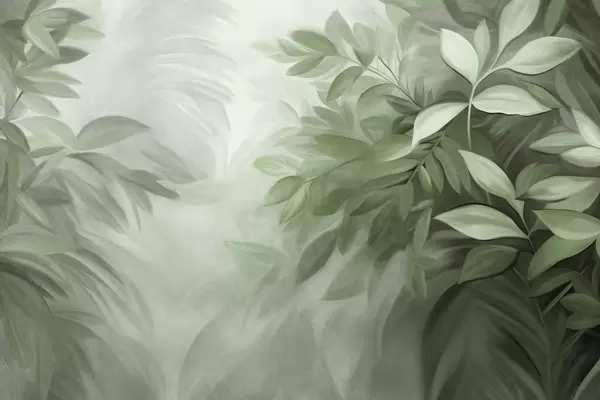 Fotobehang Bruine en beige bladeren met zacht, wazig gestructureerd gebladerte, in een schilderachtige stijl met zichtbare penseelstreken. N° w09584
