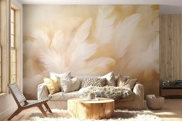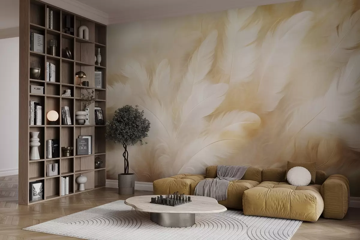 Fotobehang Witte en gele veren met zachte textuur N° w09606