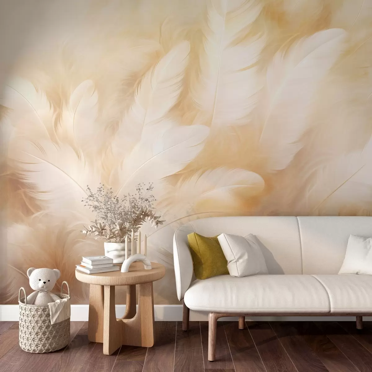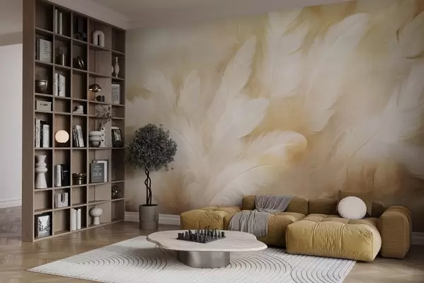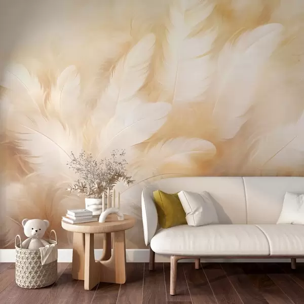 Fotobehang Witte en gele veren met zachte textuur N° w09606
