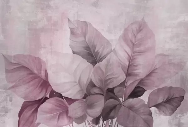 Fotobehang Textuurverf imitatie van grote, lichtbruine bladeren tegen een neutrale achtergrond met subtiele penseelstreken N° w09614