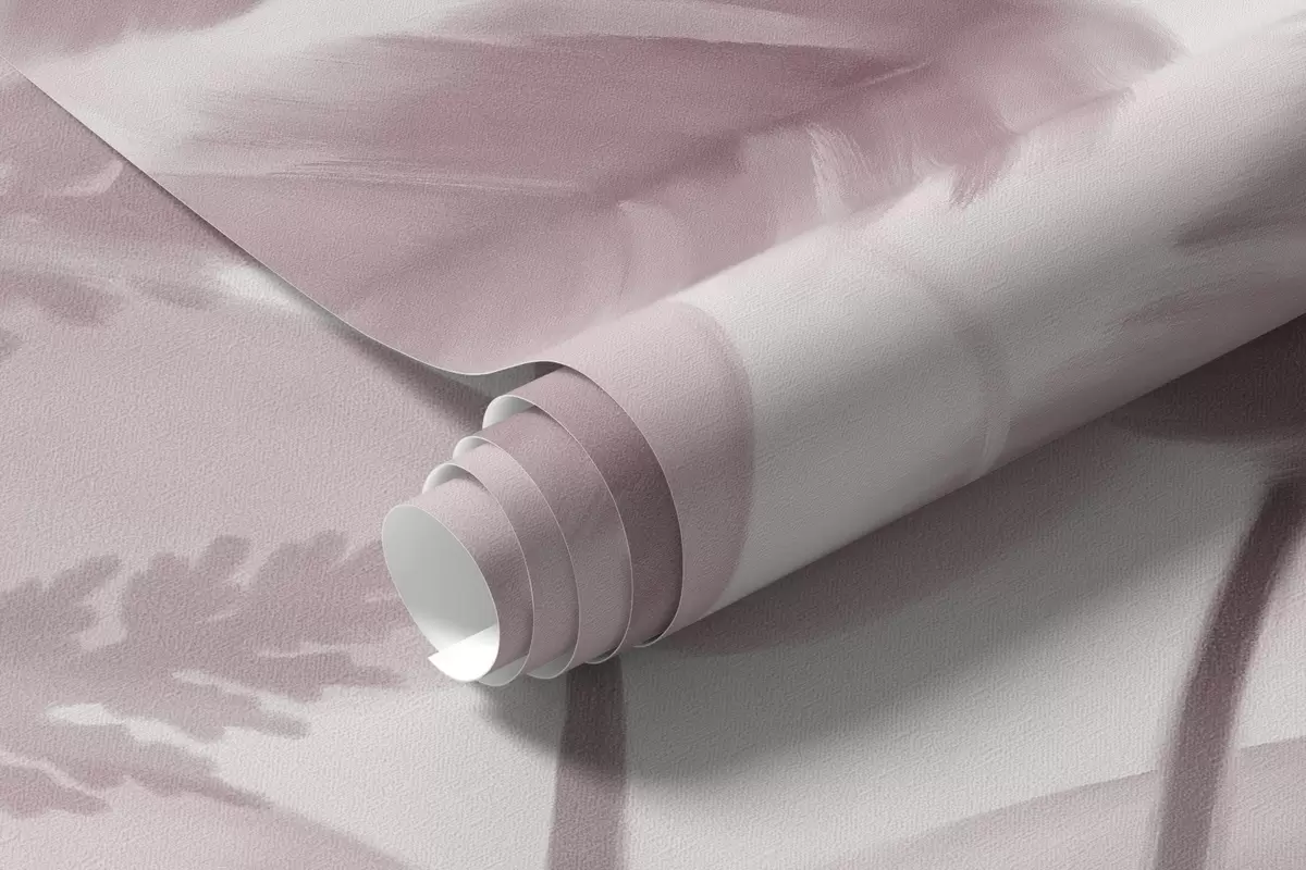 Fotobehang Getextureerde gedroogde varenbladeren in verschillende tinten roze, met een zachte, lichte achtergrond in aquarelstijl. N° w09615v2