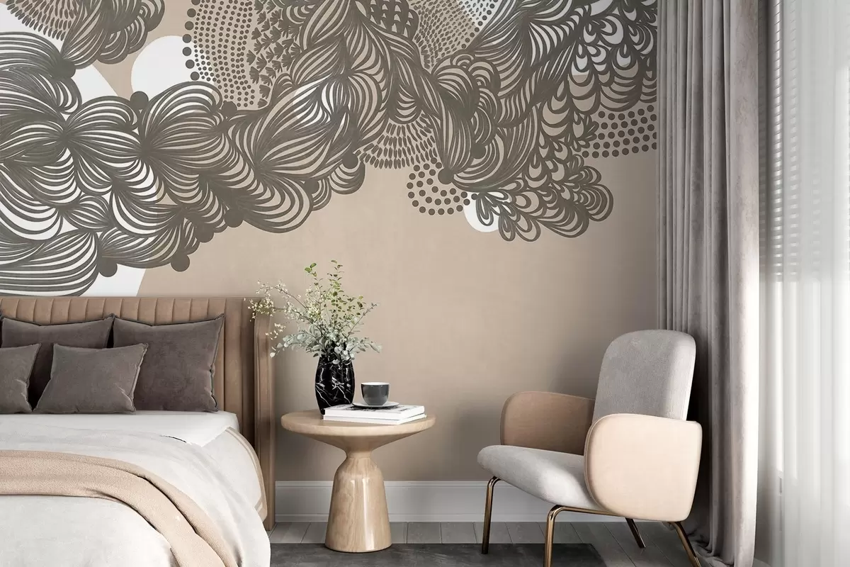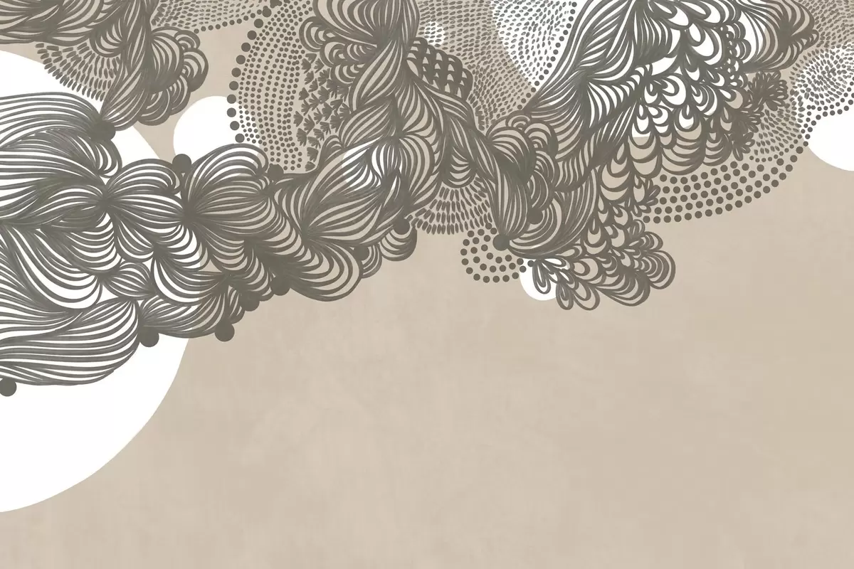Fotobehang Abstract textuurontwerp op een beige achtergrond, met gedetailleerd lijnwerk en gestippelde texturen. N° w09621